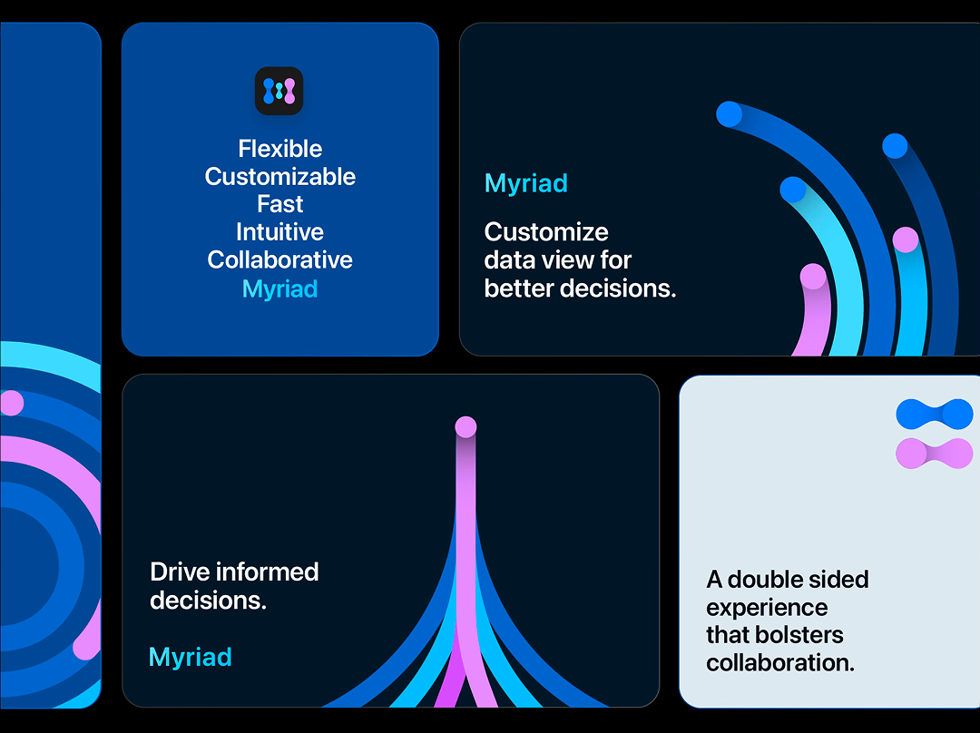 Beyond the product experience, we also designed the full identity of Myriad—from naming to visual system.